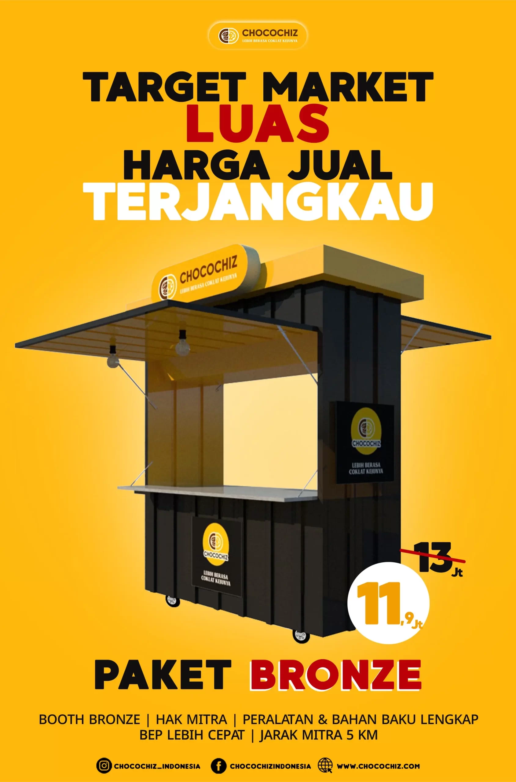 Chocochiz akan selalu mendampingi dan memenuhi keperluan mitra. Mulai dari design keperluan mitra, Design promo, pendaftaran grab & online shop, repeat order bahan baku dan lain” GRATIS